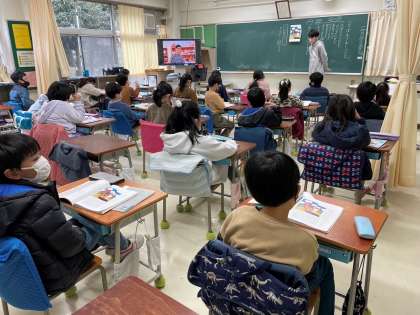 やなせたかしさんが戦争を経験して感じた「つらさ」と、そこで気付いた「うれしさ」について触れ、「苦しんでいる人々に自分なら何をしてあげたいか」を考えました。
