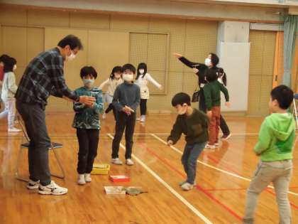 子どもたちが地域の方々に昔遊びを教わりながら、親しみをもって活動に取り組むことができました。「知らなかった遊びを知ることができてよかった。」「家でもやりたい。」など、子どもたちにとっても貴重な経験になったと思います。
