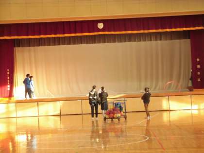 そして、朝、体育館に集まり、みんなで撮影をしました。