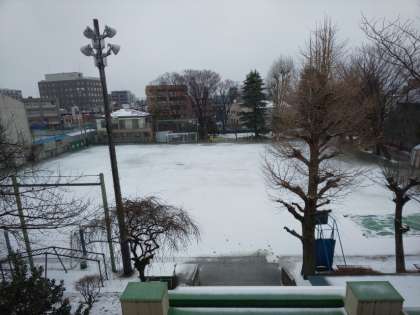 降雪のピークを過ぎたようですが、笹原小学校の校庭にも雪が積もりました。