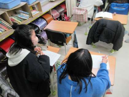 最後に今日の学習を振り返るとともに、次の活動を確認しました。とても積極的に学習に取り組み、仲よく、互いに考えを出し合いながら学習を進める子どもたちでした。