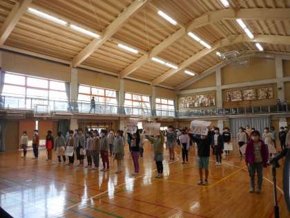 1年生は「キセキ」を歌いながら手話を披露しました。一生懸命に歌ったり言葉を発表したりする姿に、6年生からは思わず「かわいい!」の声が聞こえてきました。
