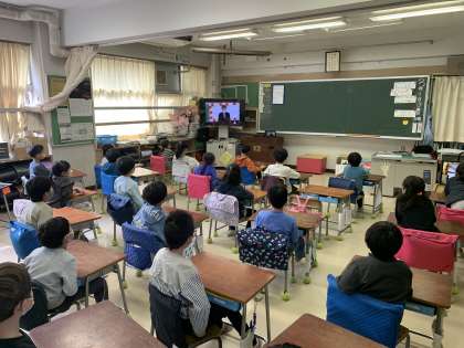 本日6年生を送る会が行われました。1年生は、給食の時間に6年生の演奏を聴いた曲を手話とメッセージを交えて歌いました。1年間、様々な面でお世話になった6年生への感謝を精一杯伝えることができました。