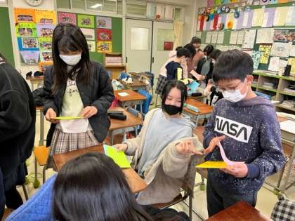 笹の子班の班長さんが受け取り、教室で班の仲間に渡しました。