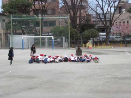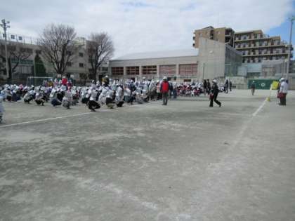 小学校生活最後の避難訓練に参加した6年生は、体育館での卒業式練習の真っただ中でしたが、緊急放送を聴き、身の安全の確保する姿勢を取り、担任の指示でとても落ち着いて静かに校庭に避難していました。