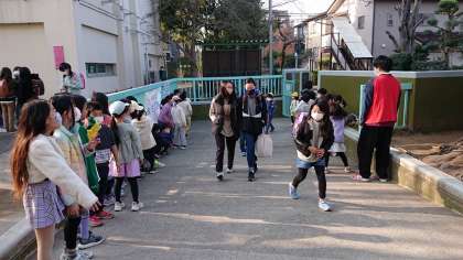 今日は、「何人にあいさつができるかな?」ということであいさつできた人数を競っている姿も見られました。