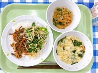 今日も昨日に引き続き、WBC応援給食です。昨日の中国との初戦は、とてもよい試合でした。今日は韓国と試合をします。ビビンバは日本でもおなじみの韓国料理です・「ビビン」は「まぜる」、「バ」はごはんという意味だそうです。チャプチェは春雨やお肉と一緒に炒めて、甘辛い味付けにしたものです。しっかり食べて、今日の韓国戦も盛り上げましょう!