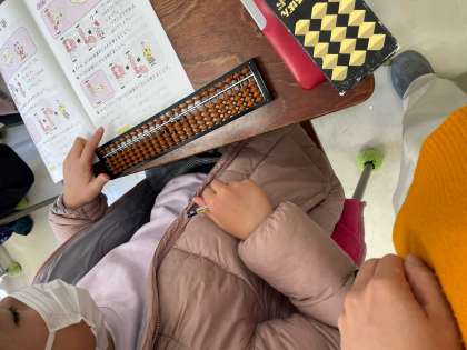 そろばんを初めて触る子も多く、とても楽しみにしていました。