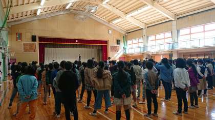 4月からは、体育館で集合型の「全校朝会」となりました。