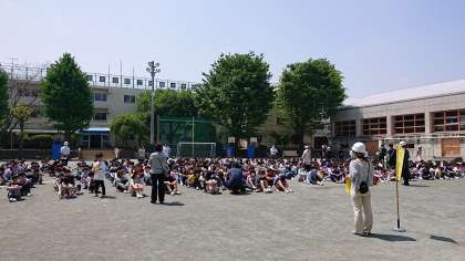 子どもたちには、事前予告をして、「校内放送をしっかり聞くこと」「おかしもの約束」「避難経路」について確認をしました。