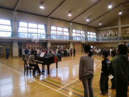 今日の音楽朝会では、今年度の学芸発表会で6年生が演じてくれた「夢から醒めた夢」の主題歌「愛をありがとう」を全員で歌いました。音楽的には難しい歌ですが、よほど子ども達の心に印象に残っているのか、大きな声でしっかり歌うことができました。