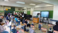 先生が子どもたちの学習用タブレット端末に問題を送って、その漢字を仲間分けしていきます。