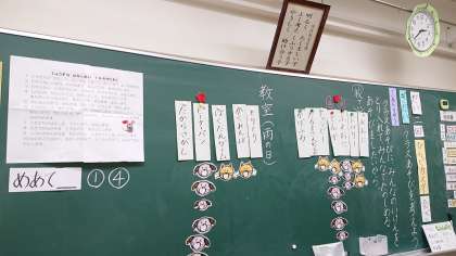 司会グループの4人(司会・副司会・板書記録・ノート記録)は、話合いを進めるために、担任の先生の助言のもと頑張りました。