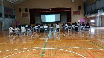 今日の3校時は、保護者向け「ネットリテラシー啓発講座」を体育館で行いました。