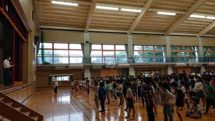 今日の全校朝会では、校長先生から「あいさつ」についてお話がありました。