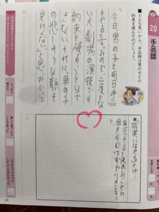 ひとりぼっちの男の子との約束を守るか、それとも自分のチャンスを生かすか、手品師は迷います。その時の心情から、「誠実に生きる」ことについて考えました。