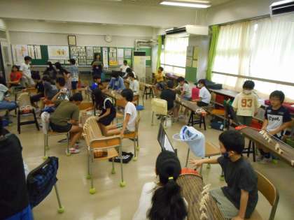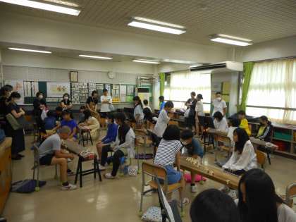グループごとに手の形や弾き方をアドバイスし合いながら、協力して取り組みました。箏の音色をたっぷりと味わうことができました。