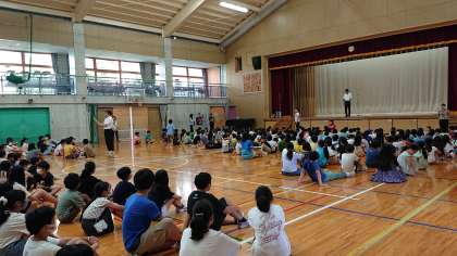 今日の全校朝会では、校長先生から嬉しいお知らせがありました。