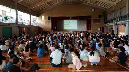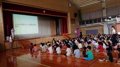 今日は、集会委員会の企画でイントロクイズを体育館で行いました。