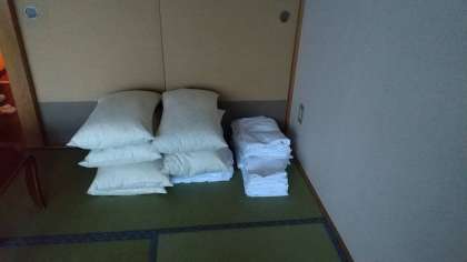 6時起床、寝具の片付けをして出発準備が進んでいます。