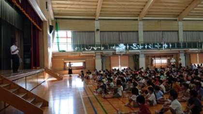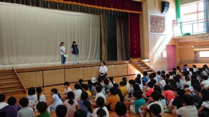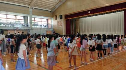 久しぶりに友達に会えてうれしい子どもたちの様子からにぎやかな体育館入場でしたが、話をしっかり聞こうという姿が見られました。