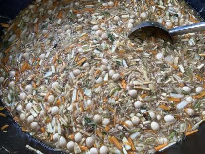 あんかけ焼きそばの麺は、餡をかけても柔らかくなりすぎないようにするために、オーブンで少し硬めに仕上げています。低学年の子どもたちは、硬めの麺に驚いているようでしたが、徐々にこういう料理もあるんだと知っていってもらえればと思います。