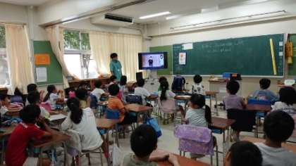 今日の朝は、短縄跳び集会で、各教室で動画視聴をしました。