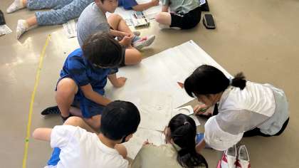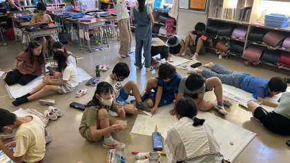 総合的な学習の時間の一環で、桜丘の商店街をもりあげるべく、ペナントづくりをしています。SDGsや商店街のキャラクターなど、グループごとに思い思いの絵をかきました。掲示された折には、ぜひ商店街に足を運んでみてください。