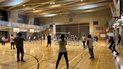 9/22に桜丘小学校で教職員親睦バレーボール大会をしました。笹原小学校は、桜丘小学校や船橋小学校と対戦しました。