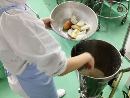りんごや玉ねぎなどをミキサーにかけて作ります。