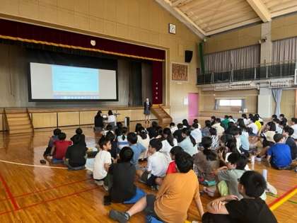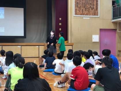 桜丘中はどんな学校なのか、どんな学校行事があるのかなどについて教えてもらいました。また、部活動の紹介もあり、準備してくださった動画を子どもたちは夢中になって見ていました。中学生へのイメージがもてるすてきな時間になりました★