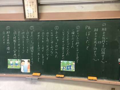 相手の気持ちを理解する心について考えました。サッカーの大切な試合中に失敗した友達の行動や、そのとき、周りの友達はどうしたらよいかを考えました。子どもたちは、自分事として考えていました。