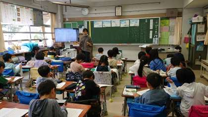 範読を聞いてから、黒板に張られた挿絵をお話の順番に並べ替えました。
