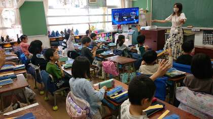 となりの席の友達とペア学習、学級全体で考える全体学習と子どもたちの学びがしっかり見られました。
