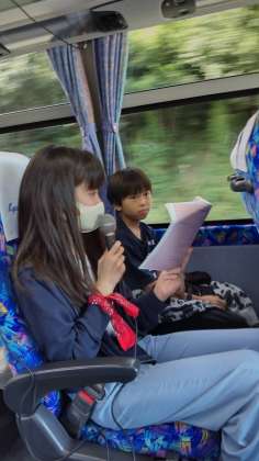 バスレク担当が座席の前に来て説明をします。