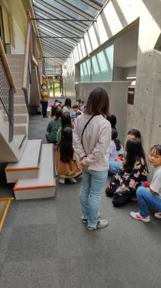 先生の指示を聞いて、生活班ごとに部屋の前の廊下で速やかに整列ができました。
