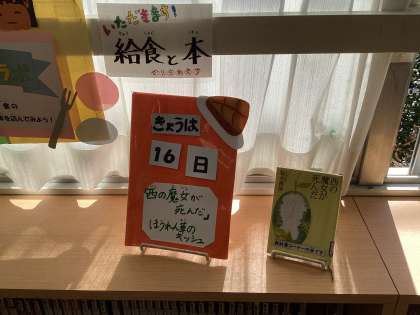 今日から読書週間です。今日は、「西の魔女が死んだ」という本に出てくる料理の「ほうれん草のキッシュ」を出しました。