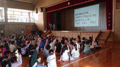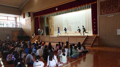今日は、8時30分から児童集会を体育館で行いました。