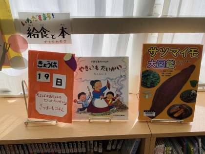 読書週間4日目の今日は、「ばばばあちゃんのやきいもたいかい」という本から、さつまいもを使った給食を提供しました。