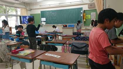 教室の中ではどうだろう…5分間でたくさんのかけ算を見付けました。