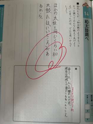 「わが町のほこり和太鼓調べ」という資料を使って、自分の住む町「桜丘」や自分の学校「笹原小学校」について考えました。