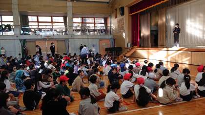 看護当番の先生からは、今週の目標「すすんであいさつをしよう」についてお話がありました。