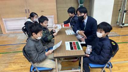 本日4年生は、ALTの先生をお招きして、様々な活動を通して英語に親しむ学習をしました。普段接する機会のない国の先生との会話や外国語の学習とは一味違うアクティビティを通して、外国語への関心を高めました。「世界が広がった気がする。」「もっと外国語を学びたい。」と、外国語を学ぶことに対して改めて気付いたことも多かったようです。