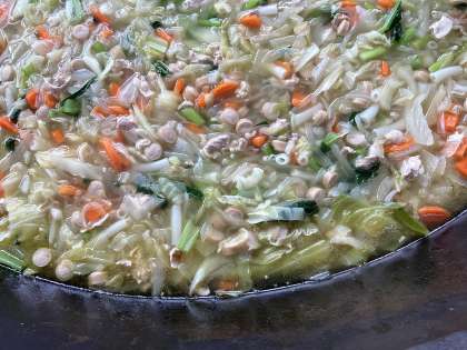 写真のスープに入っている白い棒状のものが米粉マカロニです。