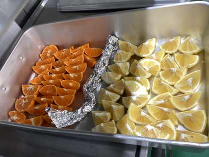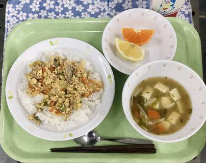 今日は、他人丼、あおさのみそ汁、柑橘食べ比べ(津のかがやき・はるか)、牛乳です。