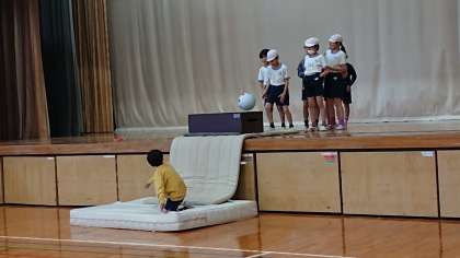 *左の写真…台とマットを使って様々なジャンプにチャレンジ!!