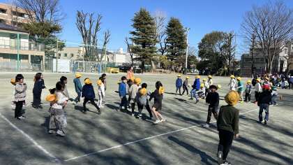 2月の元気タイムです。暖かい日差しの中、元気に遊びました。校庭も雪が解け、早めの春のような気候でした。