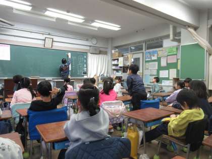 1年2組の担任が、1年1組で道徳の授業を行いました。