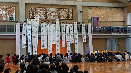 つかみは「コント」、そして巨大卒業証書授与ということで、体育館後方にみんな大注目となりました。