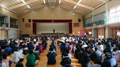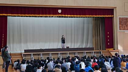 今日の全校朝会では、校長先生から先々週の「お」、先週の「え」に続いて、「う」「運動をすすんでしましょう」についてお話がありました。